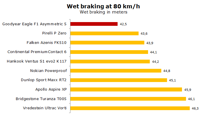 在2019年,德國雜誌《Gute Fahrt》的專家就針對尺寸 225/40 R18 的 Goodyear Eagle Asymmetric 5 進行了測試,並和其他9個類似的輪胎進行了比較。